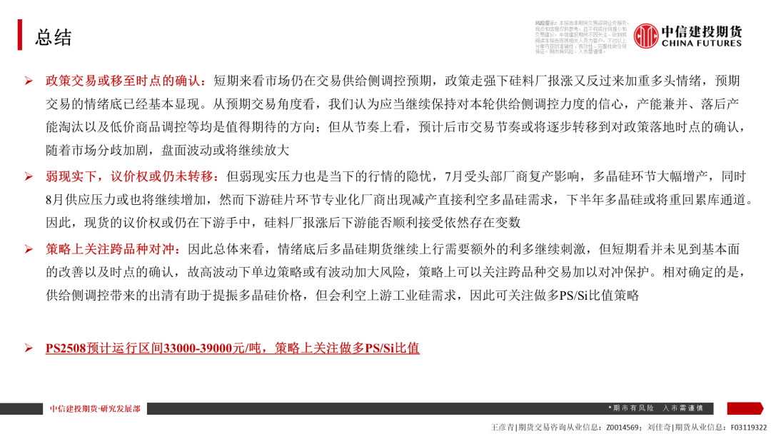 交易策略:PS2508预计运行区间33000-39000元/吨,策略上关注做多PS/Si比值