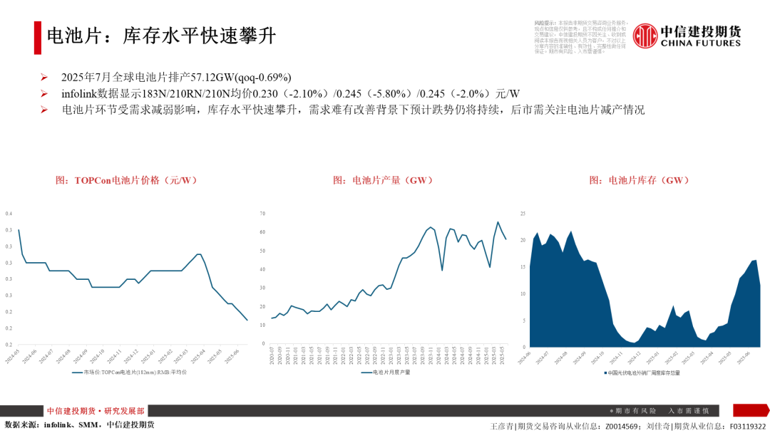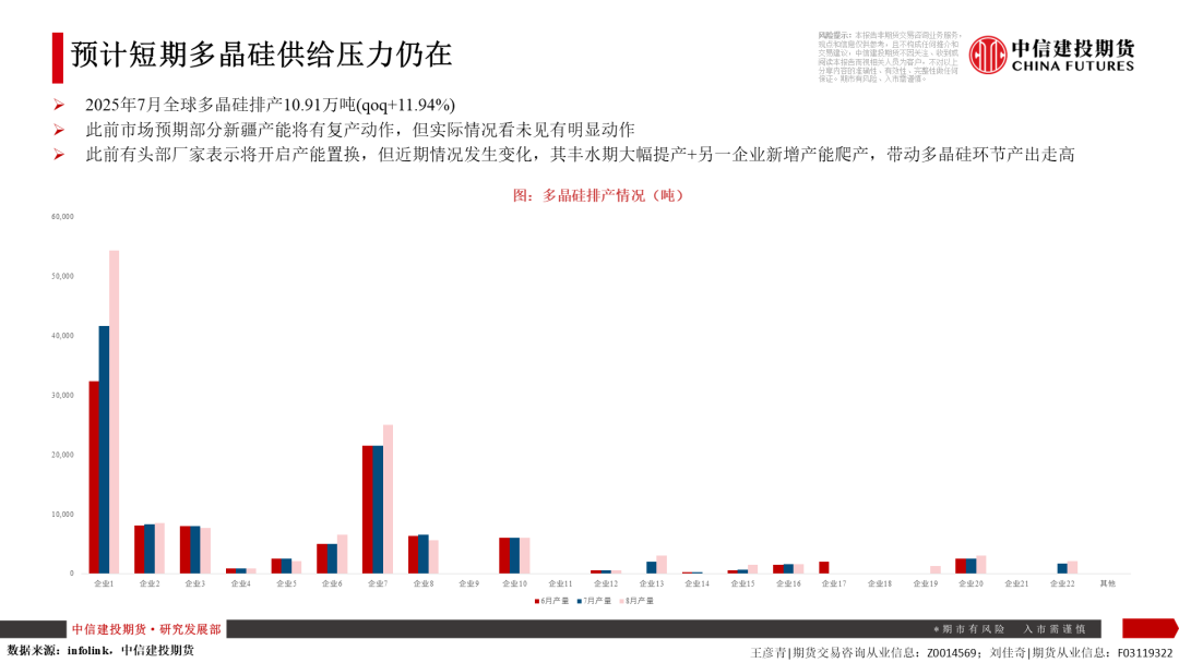 弱现实下,议价权或仍未转移:但弱现实压力也是当下的行情的隐忧,7月受头部厂商复产影响,多晶硅环节大幅增产,同时8月供应压力或也将继续增加,然而下游硅片环节专业化厂商出现减产直接利空多晶硅需求,下半年多晶硅或将重回累库通道。因此,现货的议价权或仍在下游手中,硅料厂报涨后下游能否顺利接受依然存在变数